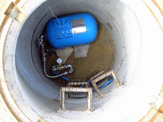 12.) Wasserversorgungsanlage mit Unterwassermotorpumpe und Strömungsschalter zum automatischen Betrieb, im Schacht frostsicher eingebaut